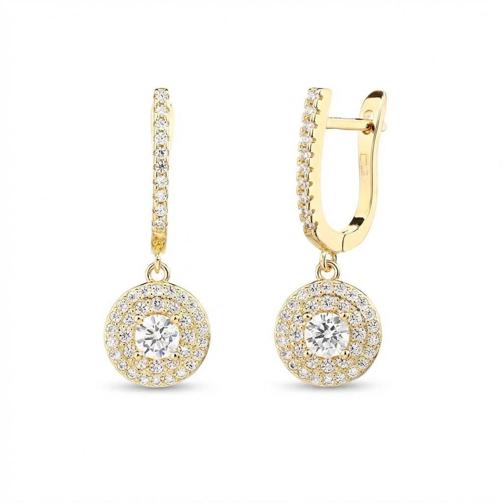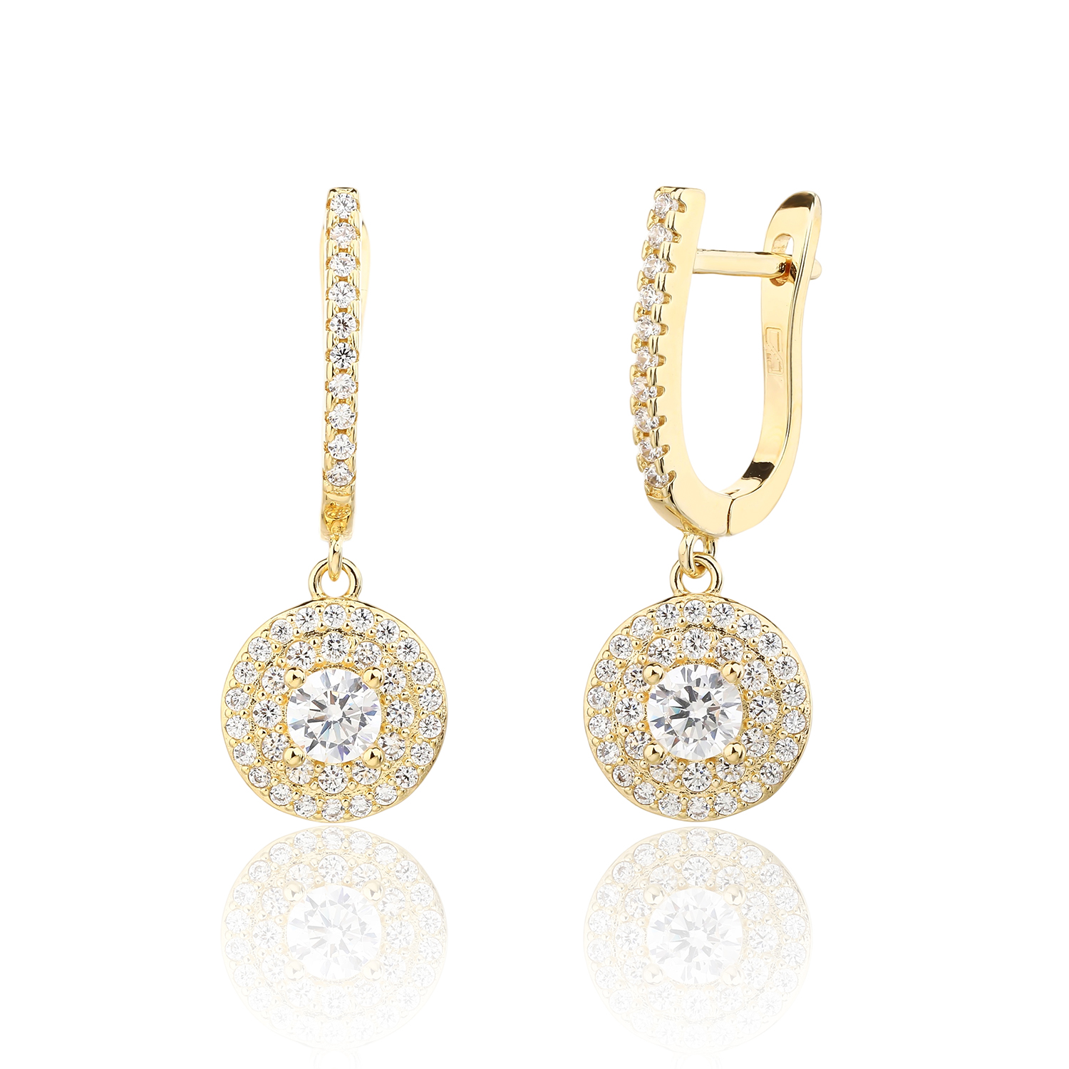 עשויים פליז ומשובצים זהב בעובי 2 מיקרון משובצים אבני זרקון העגילים מגיעים כזוג.