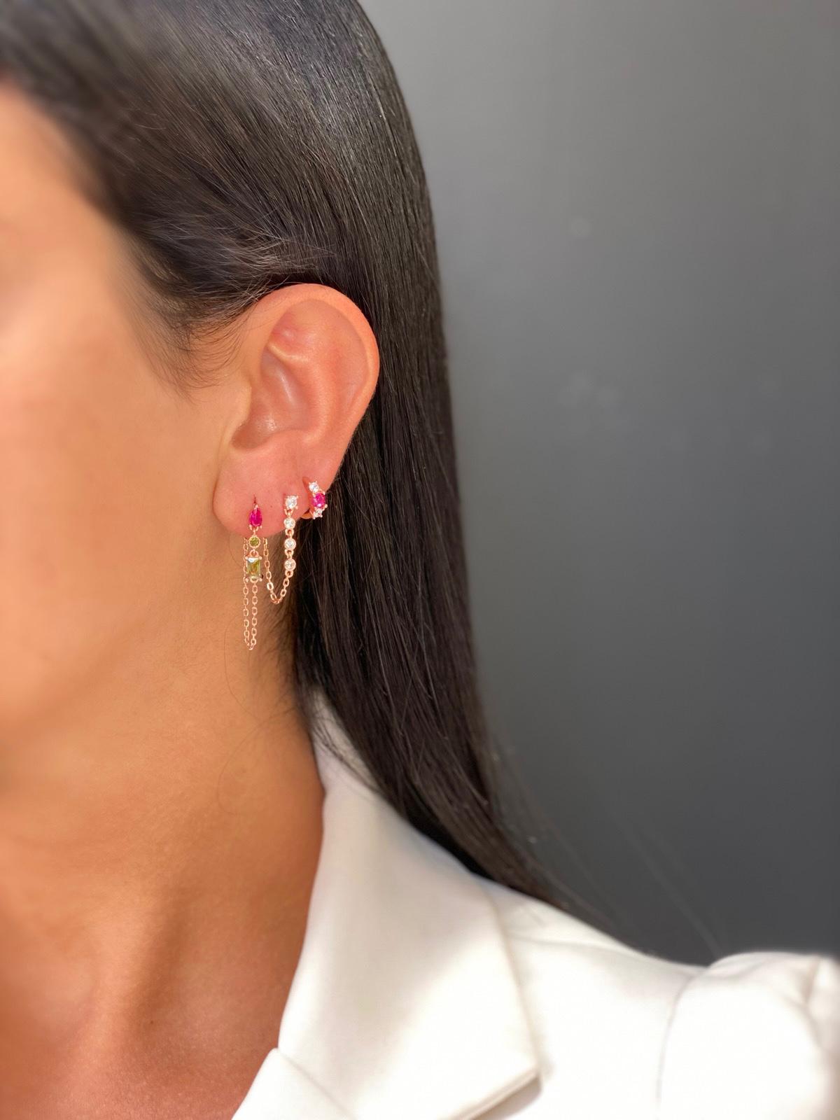 העגיל עשוי כסף 925 איכותי ומשובץ אבני זרקון נוצצות המעניקות לו מראה יוקרתי וזוהר מחמיא. קל משקל ונוח לענידה לאורך כל היום, עם סגירה בטיחותית לשימוש נוח ובטוח.