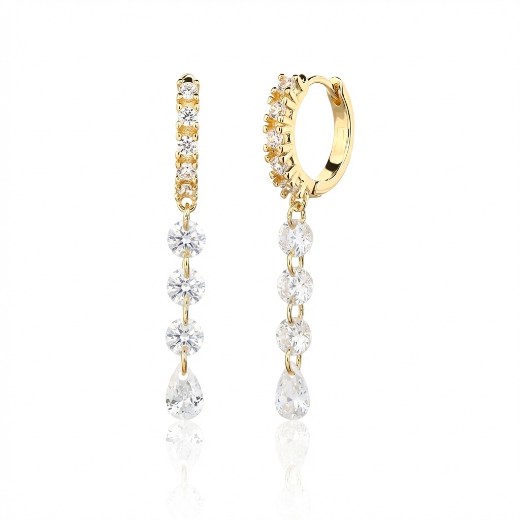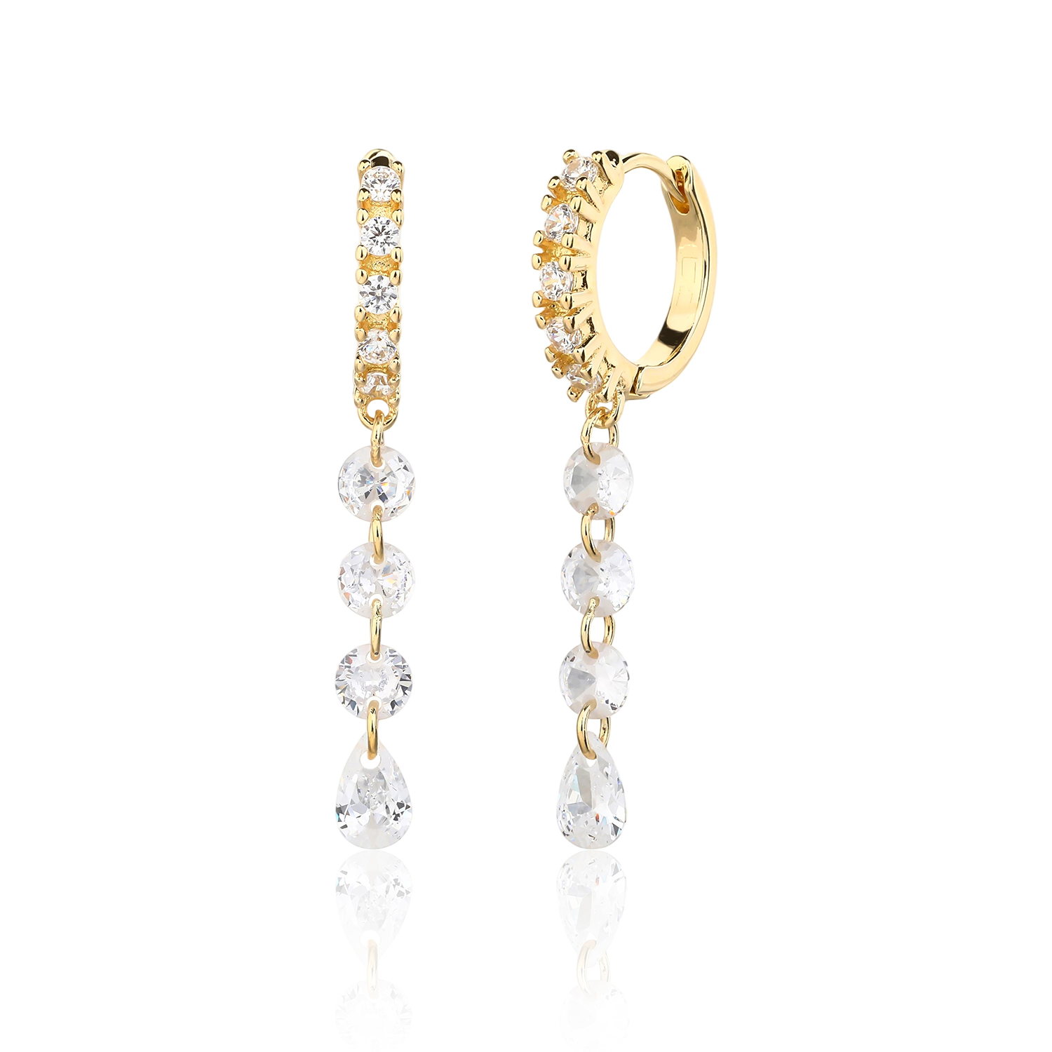 עשויים פליז ומשובצים זהב בעובי 2 מיקרון משובצים אבני זרקון העגילים מגיעים כזוג.