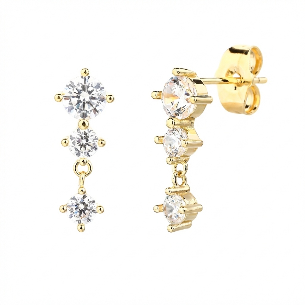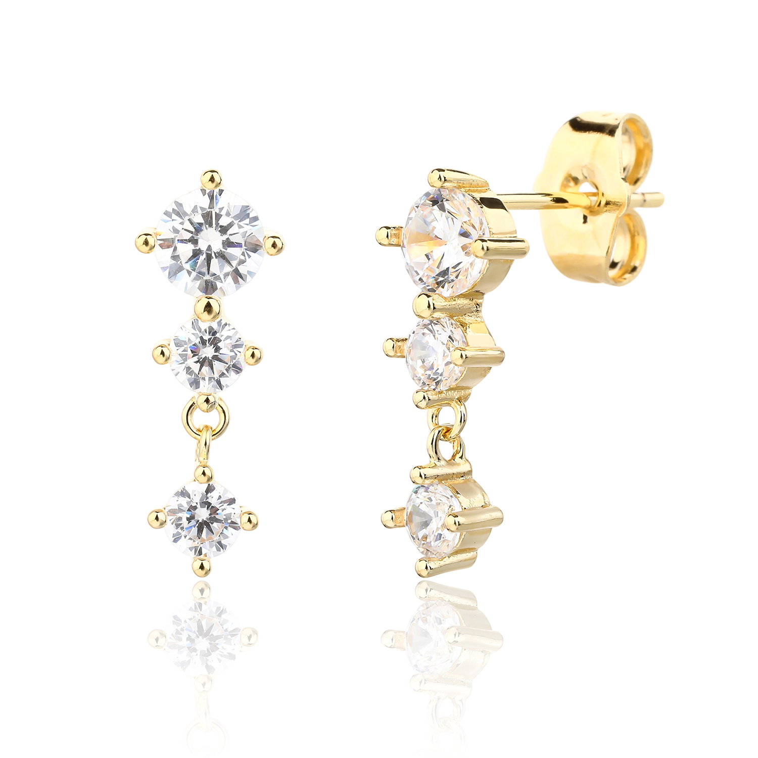 עשויים פליז ומשובצים זהב בעובי 2 מיקרון משובצים אבני זרקון העגילים מגיעים כזוג.