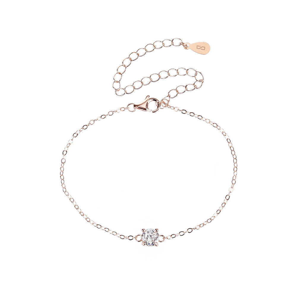 צמיד ZSI527-2 הוא צמיד רוז גולד אלגנטי בעיצוב סוליטר קלאסי, הכולל אבן מרכזית עגולה משובצת זרקונים נוצצים. עיצובו המינימליסטי מדגיש את הברק של האבן ויוצר מראה יוקרתי אך מאופק.