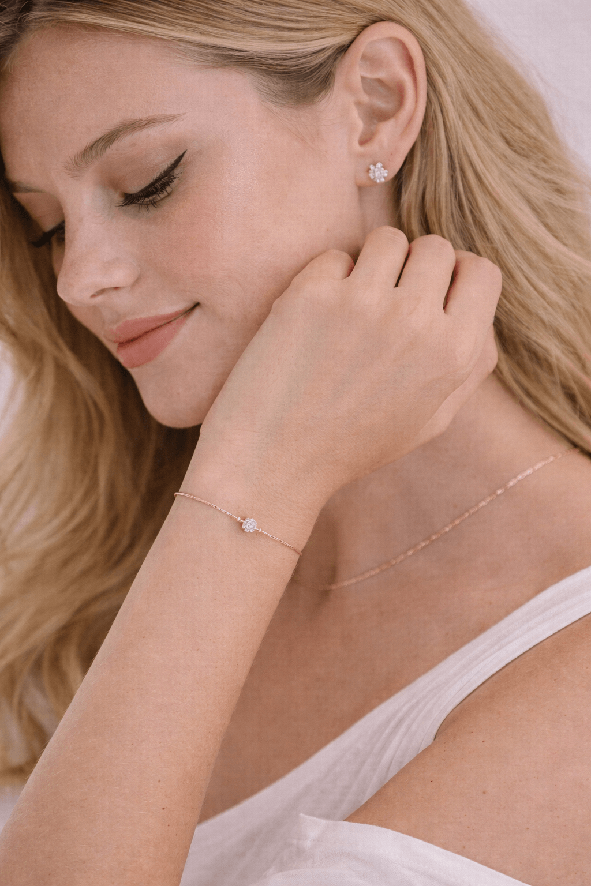 השרשרת הדקה מעניקה תחושת קלילות ועדינות, והסגירה המתכווננת מאפשרת התאמה מושלמת לפרק היד. תכשיט ורסטילי שמתאים לשילוב עם שעון, צמידי שכבות או כפריט בודד עם נוכחות שקטה.