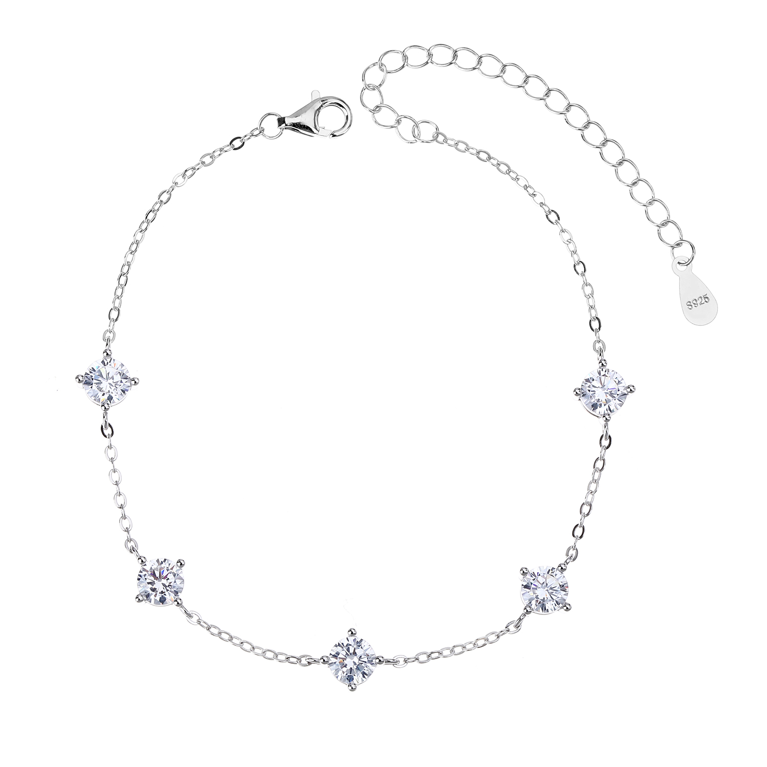 עשוי כסף אמיתי 925 משובץ אבני זרקון אורך הצמיד: 15+5 ס”מ