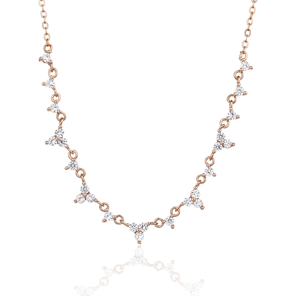 עשויה כסף אמיתי 925 בציפוי זהב אדום (רוז גולד) משובצת באבני זרקון אורך השרשרת: 40+5 ס”מ