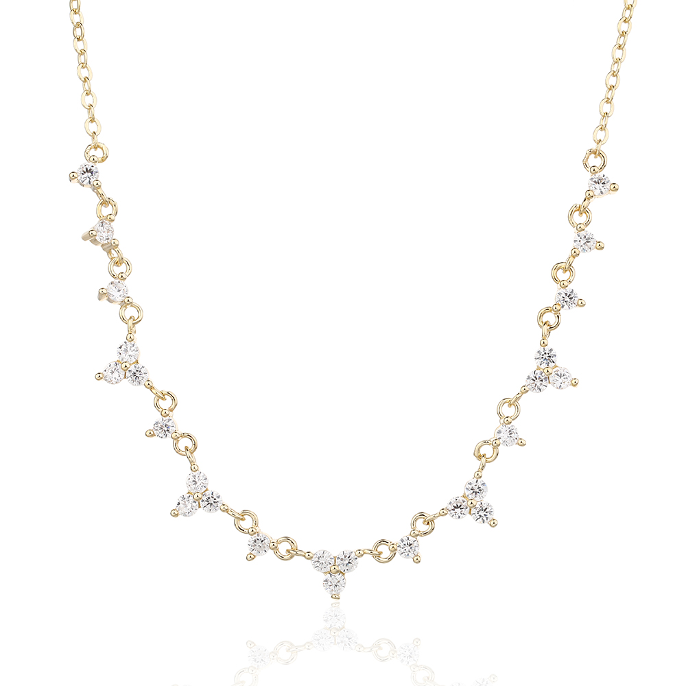 עשויה פליז בציפוי זהב 14K בעובי 2 מיקרון משובצת באבני זרקון אורך השרשרת: 40+5 ס”מ